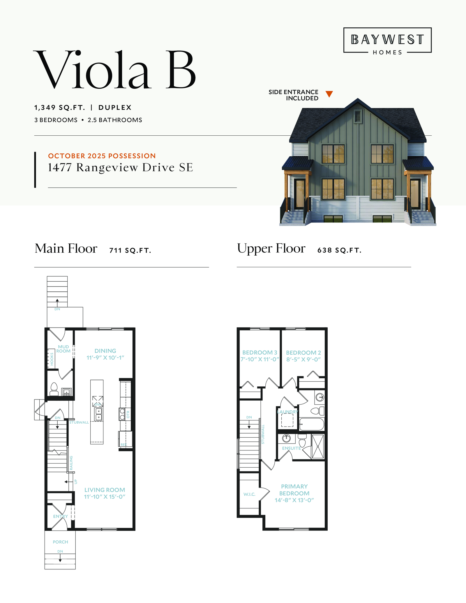 Welcome to this thoughtfully crafted attached farmhouse-style home nestled in Rangeview, Calgary’s first garden-to-table community. Designed with timeless charm & modern functionality, the Viola combines character, comfort, & versatility in a way that just feels right. From the moment you pull up, the home’s classic farmhouse exterior, complete with smartboard detailing and front landscaping, makes a memorable first impression. Inside, the main floor unfolds in a bright, open-concept layout with large windows that bathe the space in natural light and elevate the overall warmth & livability of the home. At the front, the inviting living room offers the perfect place to relax or host guests, framed by soft neutral tones & high-quality finishes. The central dining area is open & spacious—easily accommodating everything from weekday meals to larger holiday gatherings. At the back of the home, the chef-inspired kitchen takes center stage. It’s designed for real life—with plenty of prep space, full-height cabinetry, & modern hardware—all tied together by sleek countertops & a functional layout that keeps everything within reach. Whether you're cooking for one or a crowd, this kitchen is built to perform & impress. Just off the kitchen, the rear mudroom adds practical elegance with built-in storage and direct access to your private backyard & double detached garage—ideal for Calgary’s changing seasons and everyday convenience. Upstairs, the primary suite offers a peaceful retreat, featuring a spa-like ensuite with tasteful finishes, a walk-in shower, & space to truly unwind. Two additional bedrooms provide flexibility for kids, guests, or a home office, & the upper-level laundry adds convenience without sacrificing space. The home also includes a separate side entrance, creating an excellent opportunity to develop a future basement suite (A secondary suite would be subject to approval and permitting by the city/municipality) —perfect for multi-generational living or added income potential. Built with energy-efficient triple-pane windows, this home delivers year-round comfort & long-term savings without compromising on design. But why Rangeview? More than just a neighbourhood, Rangeview is a lifestyle centered around food, connection, & community. As Calgary’s first agri-urban community, it’s designed to inspire & connect—offering everything from community gardens & edible landscaping to seasonal food festivals, markets, & workshops. It’s a place where neighbours become friends & the simple act of growing, cooking, & sharing food brings people together. Stroll along walkable streetscapes, unwind in scenic parks, & discover a vibrant calendar of community events designed to enrich your everyday life. With stunning architecture, thoughtful urban planning, & a warm, welcoming spirit, Rangeview is a place to plant roots.